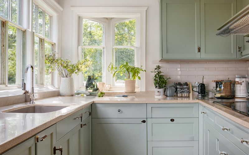 Köksluckor & väggar nymålade vid köksrenovering. Mölnlycke i Härryda